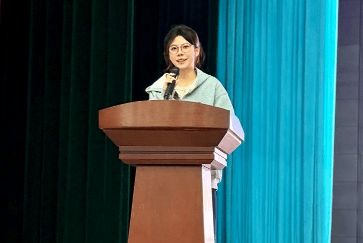 优秀学生代表、22级小学教育一班何思妍以“同行者”身份分享经验。她结合自身经历,介绍了“便签任务法”“图书馆专注法”“碎片时间利用法”三种平衡学习与活动的方式,还分享了“知识瘦身、逐个击破”的期末复习技巧。她鼓励学弟学妹将学习方法灵活运用到实践中,通过学生工作、竞赛活动提升技能,并提出“别怕起点低”“拥抱失败”“走出去扎下去”的三条成长建议。