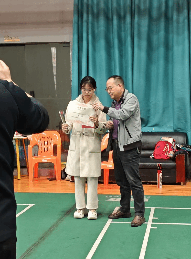 其中还有此次羽毛球比赛的各位裁判员也是全程一丝不苟,高度负责,为保证比赛的顺利进行和公平性付出诸多。校体育中心主任为获奖选手及团队颁发荣誉证书与奖杯,并表示:“羽毛球运动不仅能增强体魄,更能培养坚韧意志与协作精神,学校将持续搭建多元体育平台,让更多同学感受运动魅力。”
