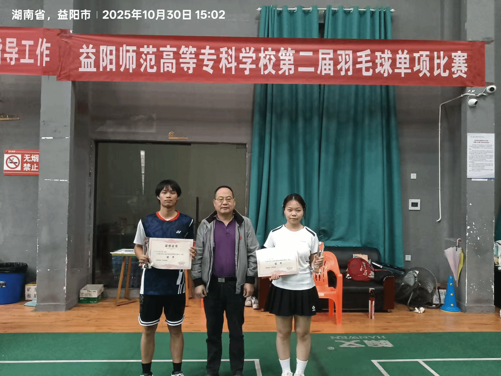银球跃动,挥拍逐光。近日,为期四天的校级羽毛球比赛在学校体育馆圆满收官。本次比赛由益阳师范高等专科学校体育运动委员会主办。以“以球会友,强健体魄”为主题,吸引了全校多个个学院、近100名选手同台竞技,在赛场之上书写青春与热血的篇章。